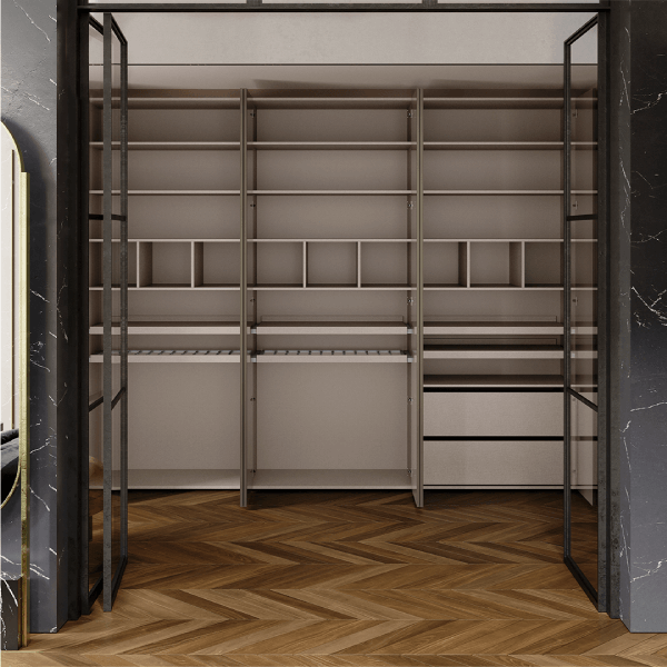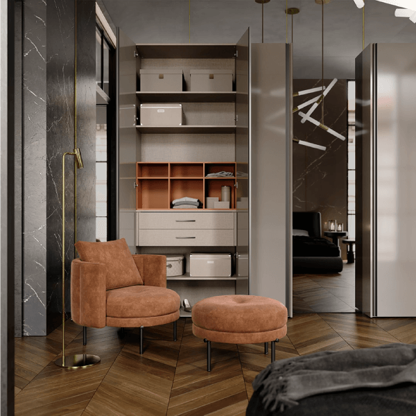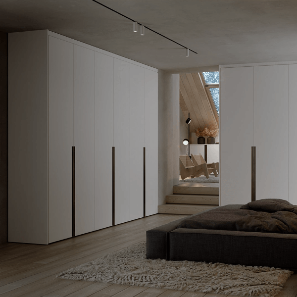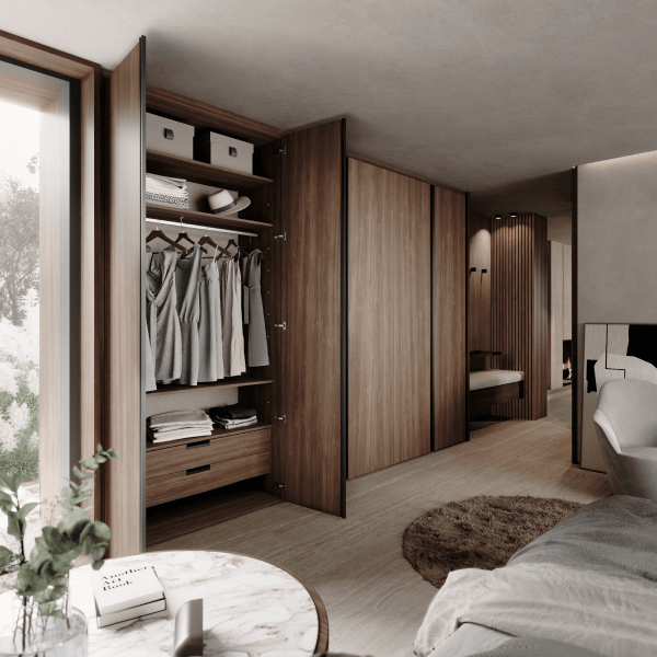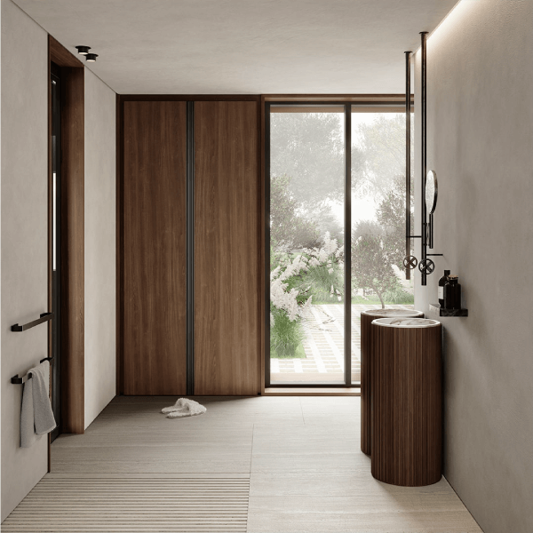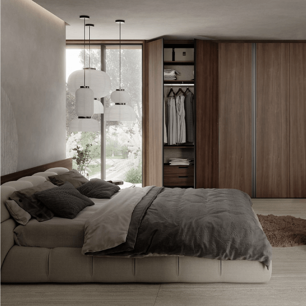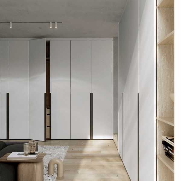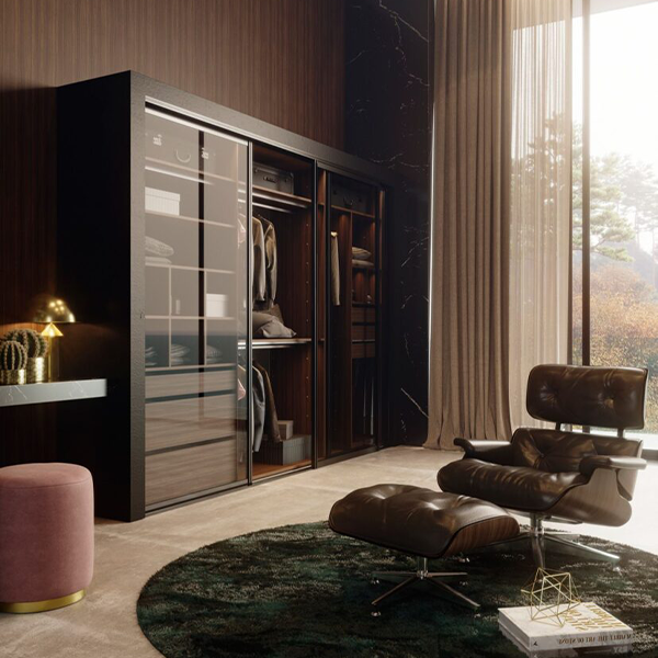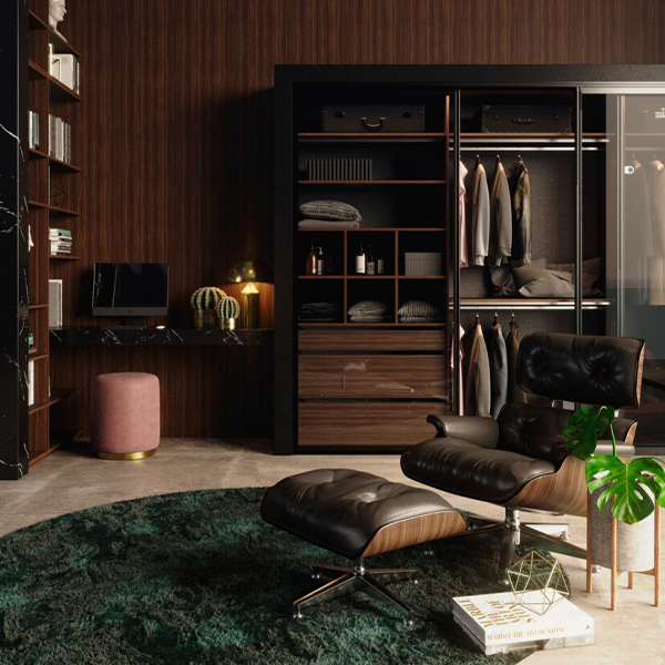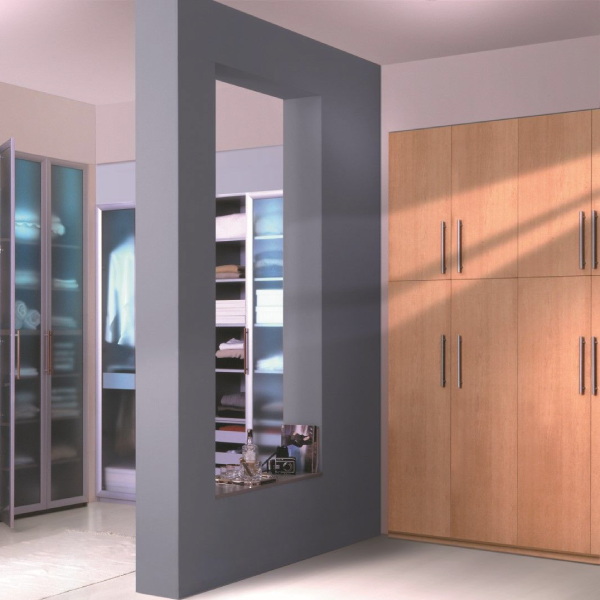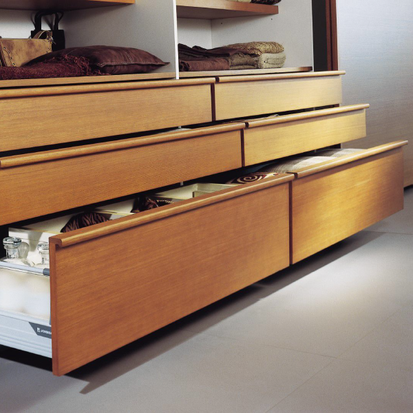 Diseño y vanguardia se conjugan fuertemente en este modelo. Ningún tirador irrumpe la linealidad acentuada por las suaves vetas horizontales.