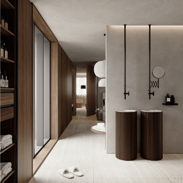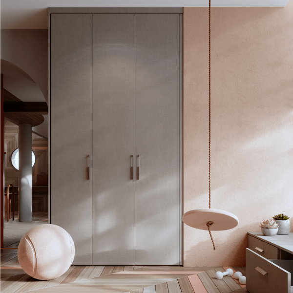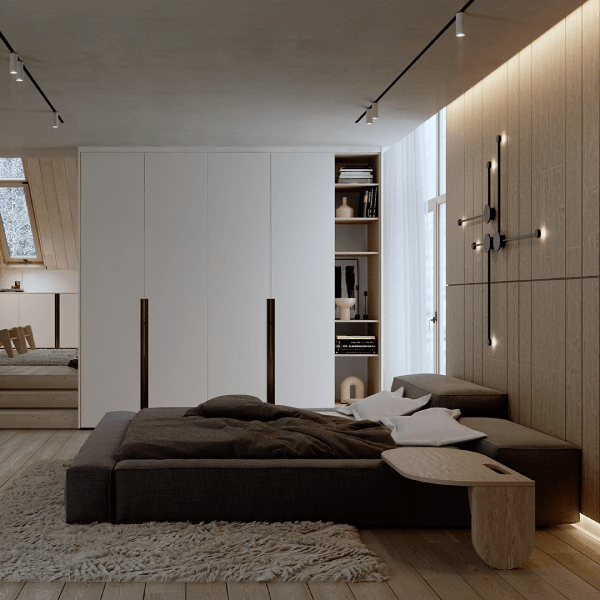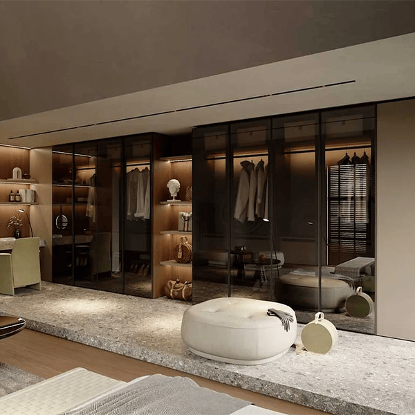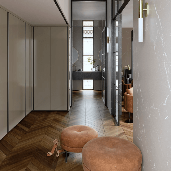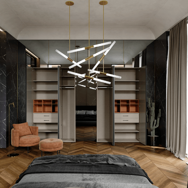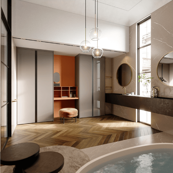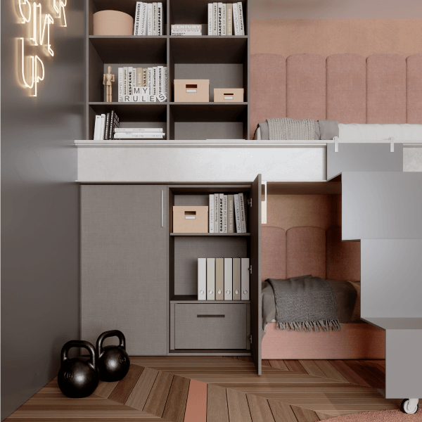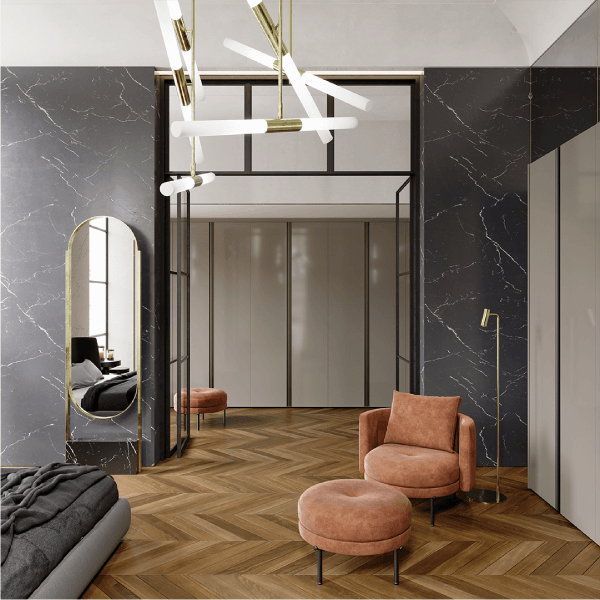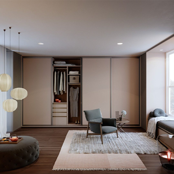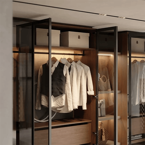 Diseño y vanguardia se conjugan fuertemente en este modelo. Ningún tirador irrumpe la linealidad acentuada por las suaves vetas horizontales.