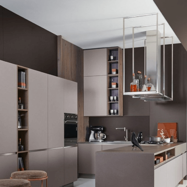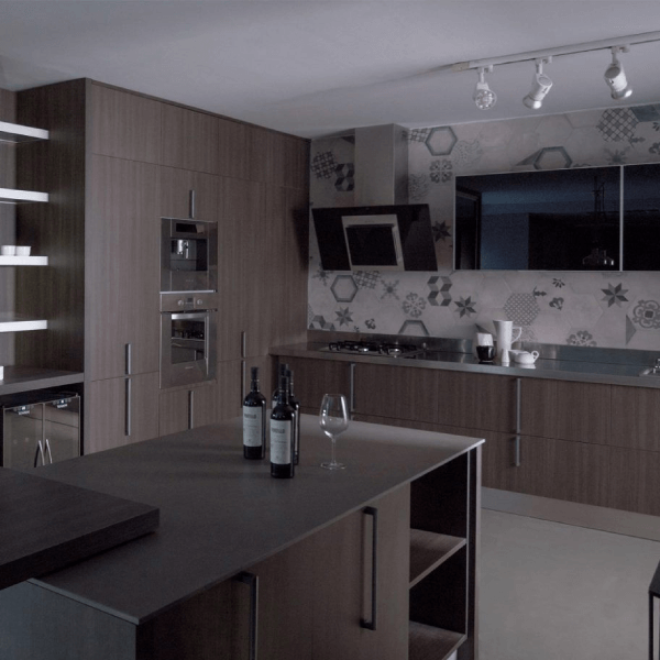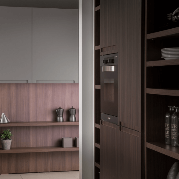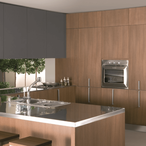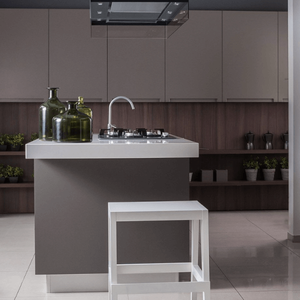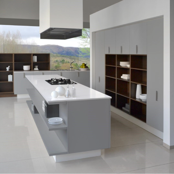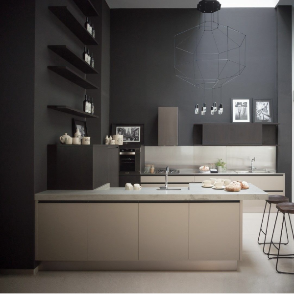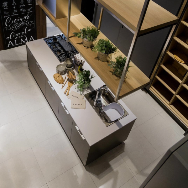 Una cocina de estética elegante. Este modelo propone líneas rectas y superficies uniformes, planteando un producto de estética elegante a través de combinaciones sofisticadas.