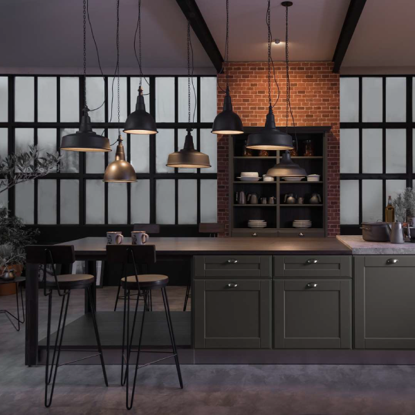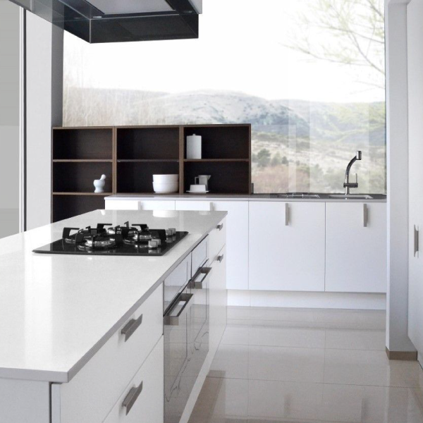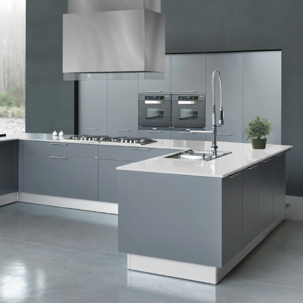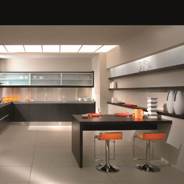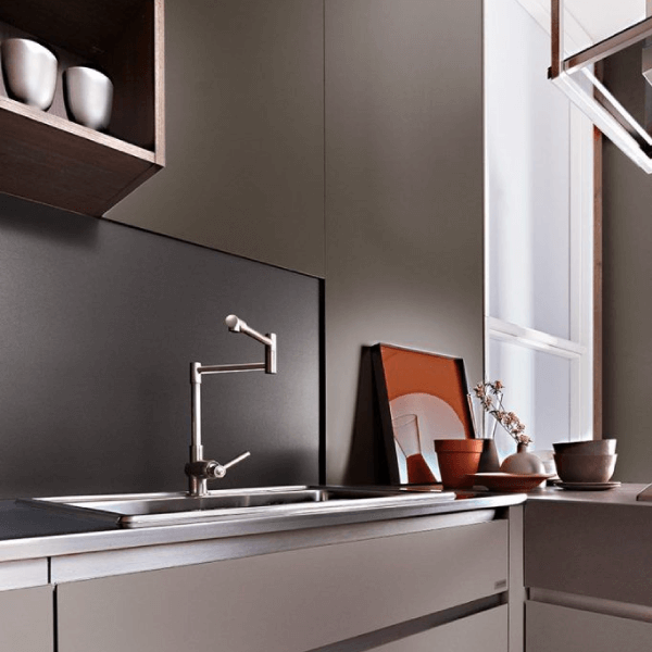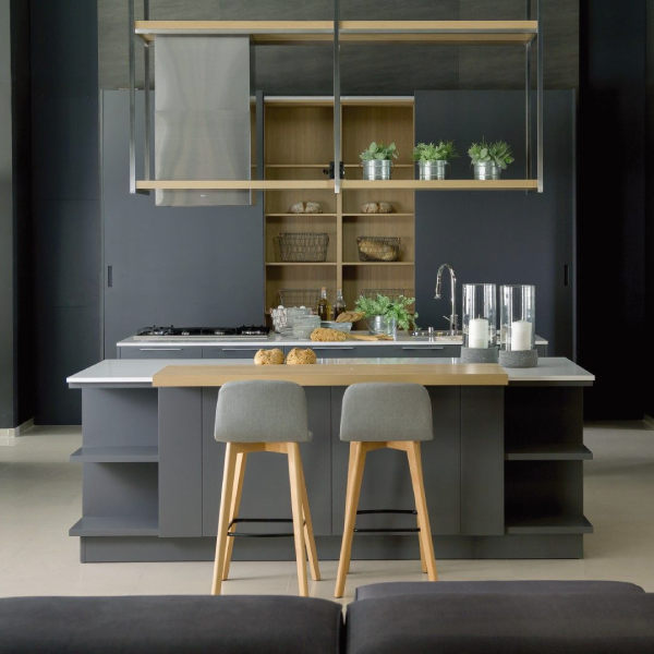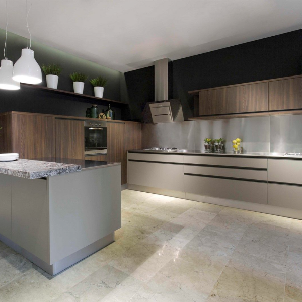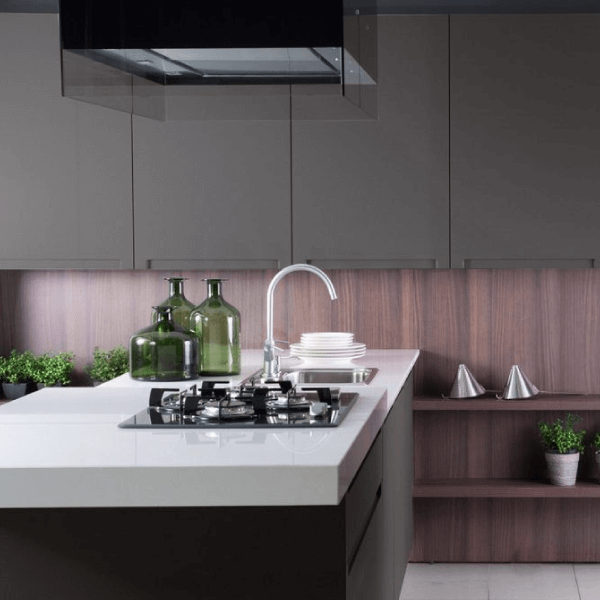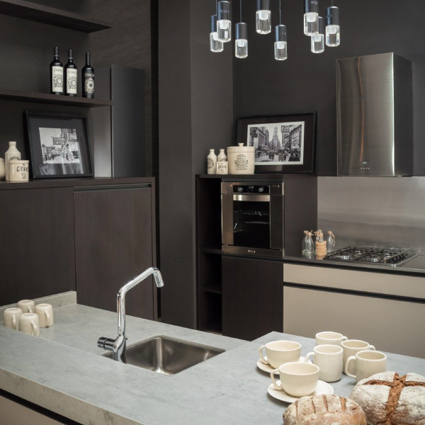Una cocina de estética elegante. Este modelo propone líneas rectas y superficies uniformes, planteando un producto de estética elegante a través de combinaciones sofisticadas.