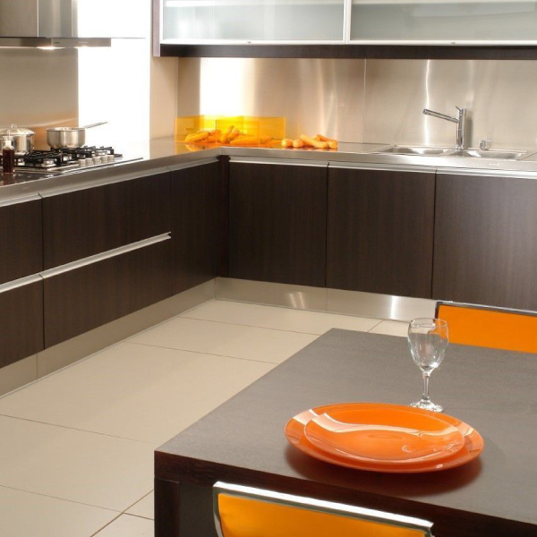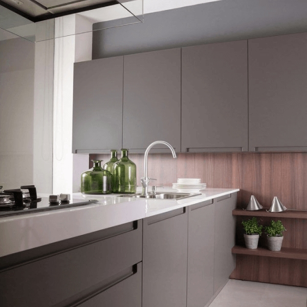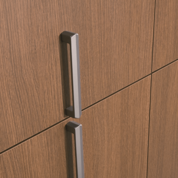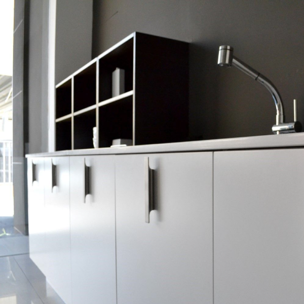 Su principal característica es la manija incorporada en las puertas en RPT y la posibilidad de combinación con motivos melamínicos.