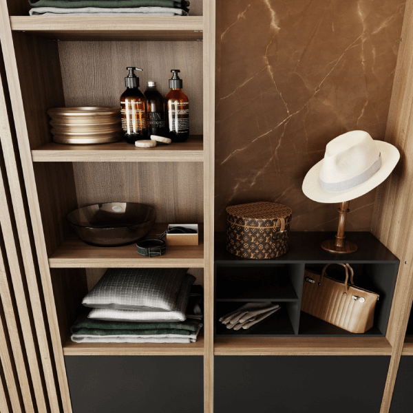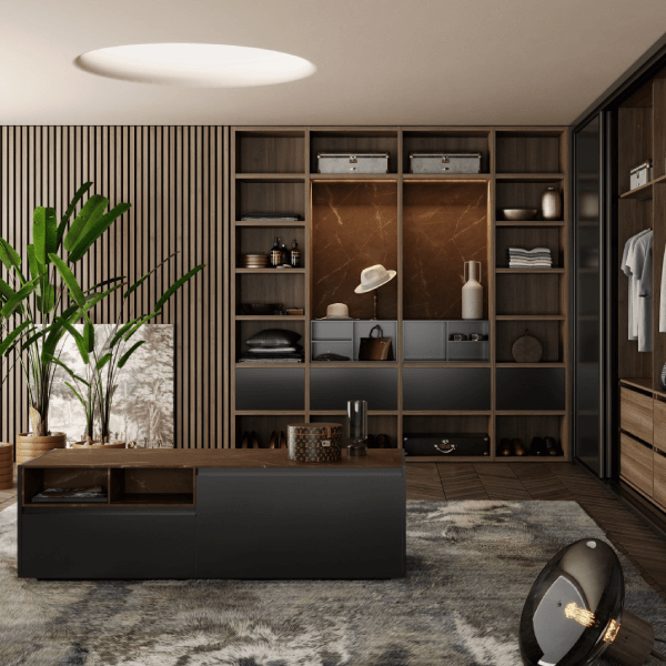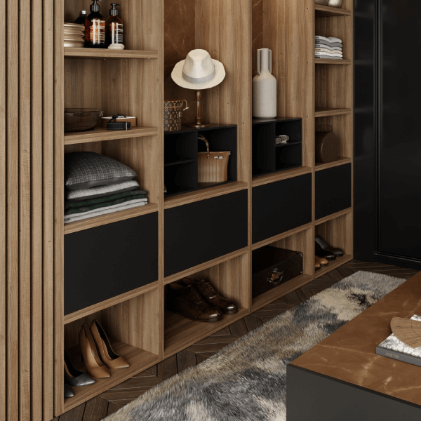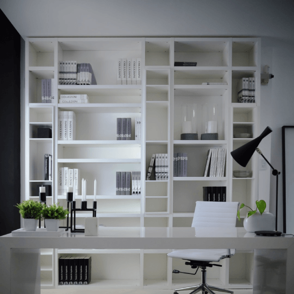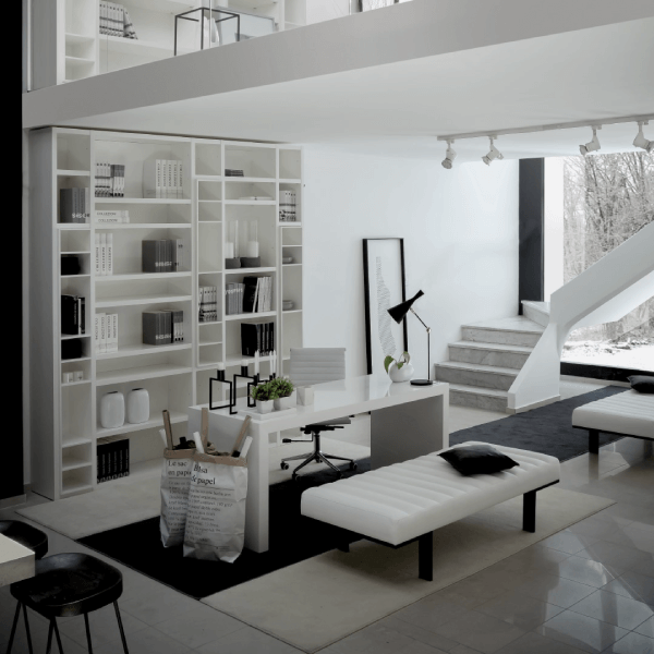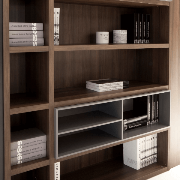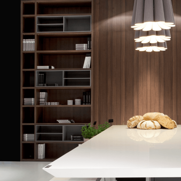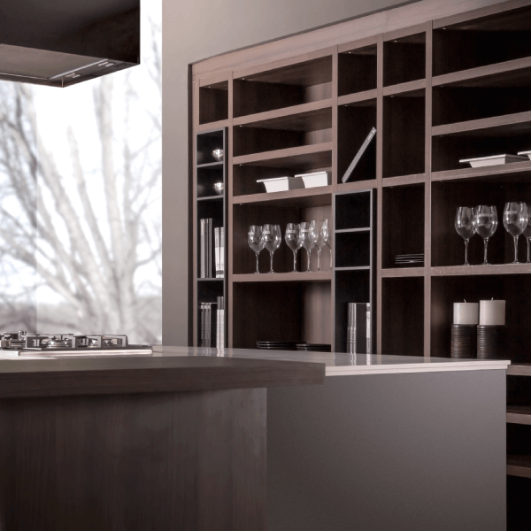 Sistema Open personaliza a través de estanterías con diseño flexible relacionando de manera versátil ambientes como la cocina, living y espacios de trabajo.