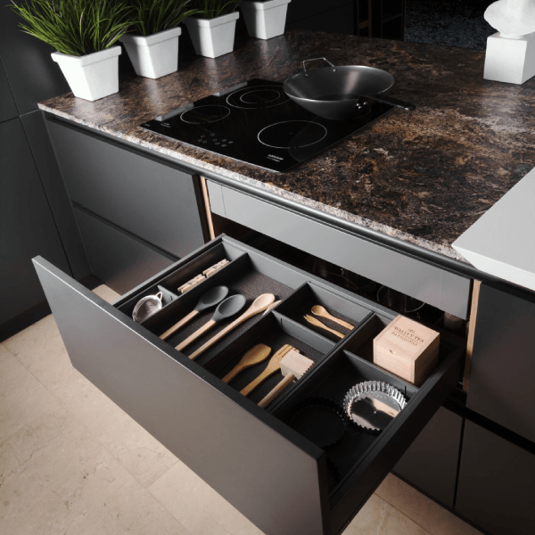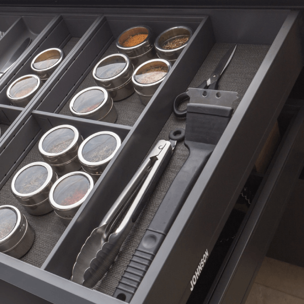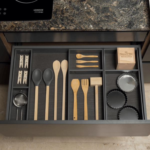 El nuevo sistema de cajones JOHNSON LEGRABOX se caracteriza por su funcionalidad y estética con un lenguaje de formas claras, expresado por laterales delgados y lineales tanto en el interior como en el exterior.